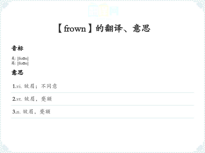 【frown】是什么意思、字义解释