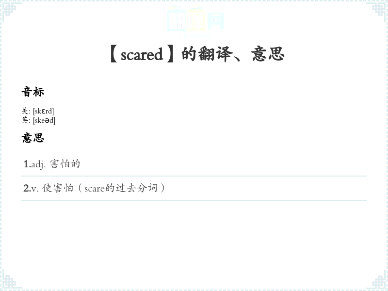 【scared】是什么意思、字义解释