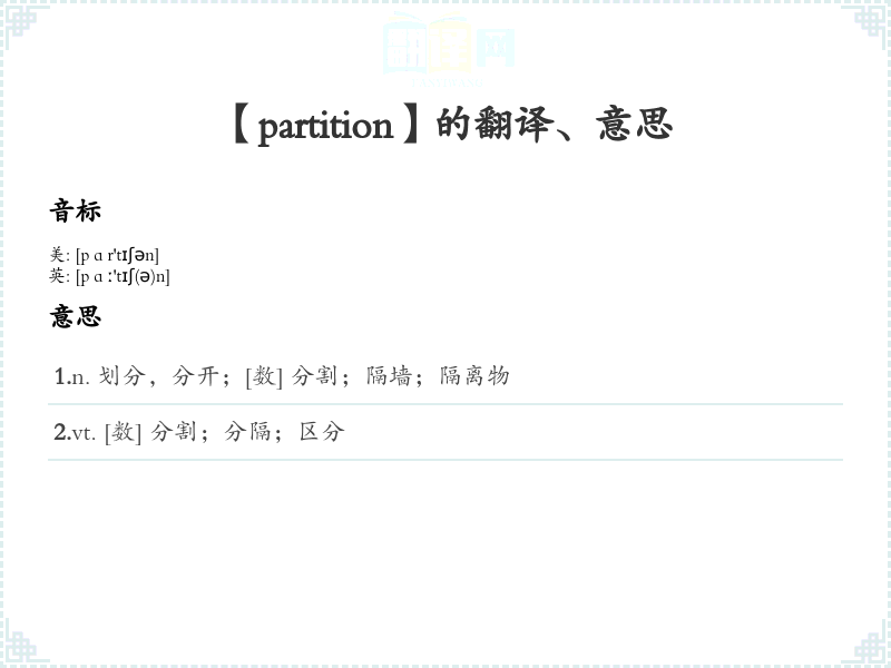 【partition】是什么意思、字义解释
