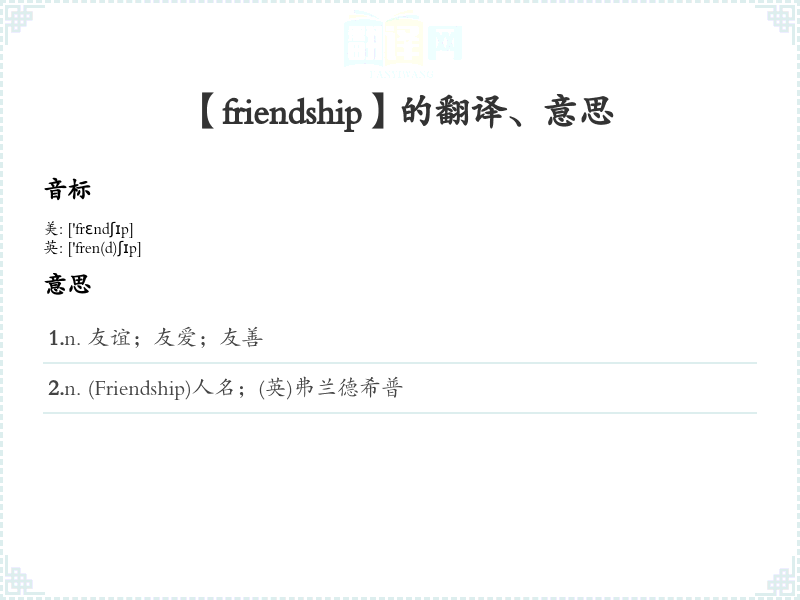 【friendship】是什么意思、字义解释