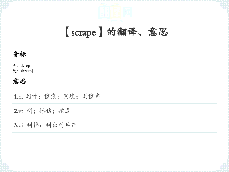 【scrape】是什么意思、字义解释