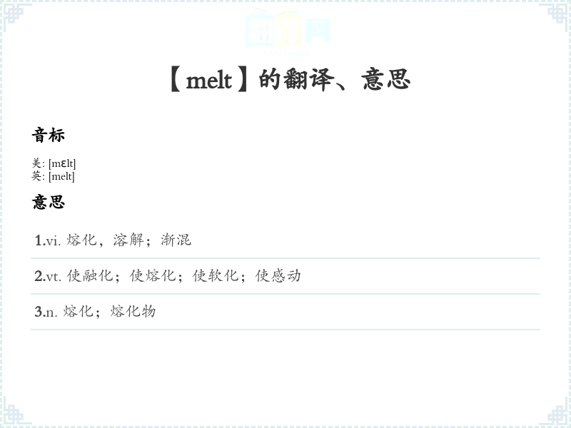 【melt】是什么意思、字义解释
